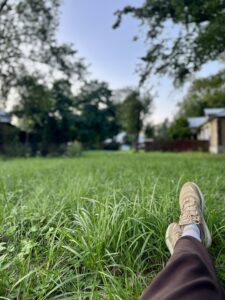 Nie po to, żeby “zaliczyć kroki” – ale żeby się rozruszać, dotlenić, złapać inny rytm. Wokół bloku, po podwórku, przez park. Sama, bez słuchawek.